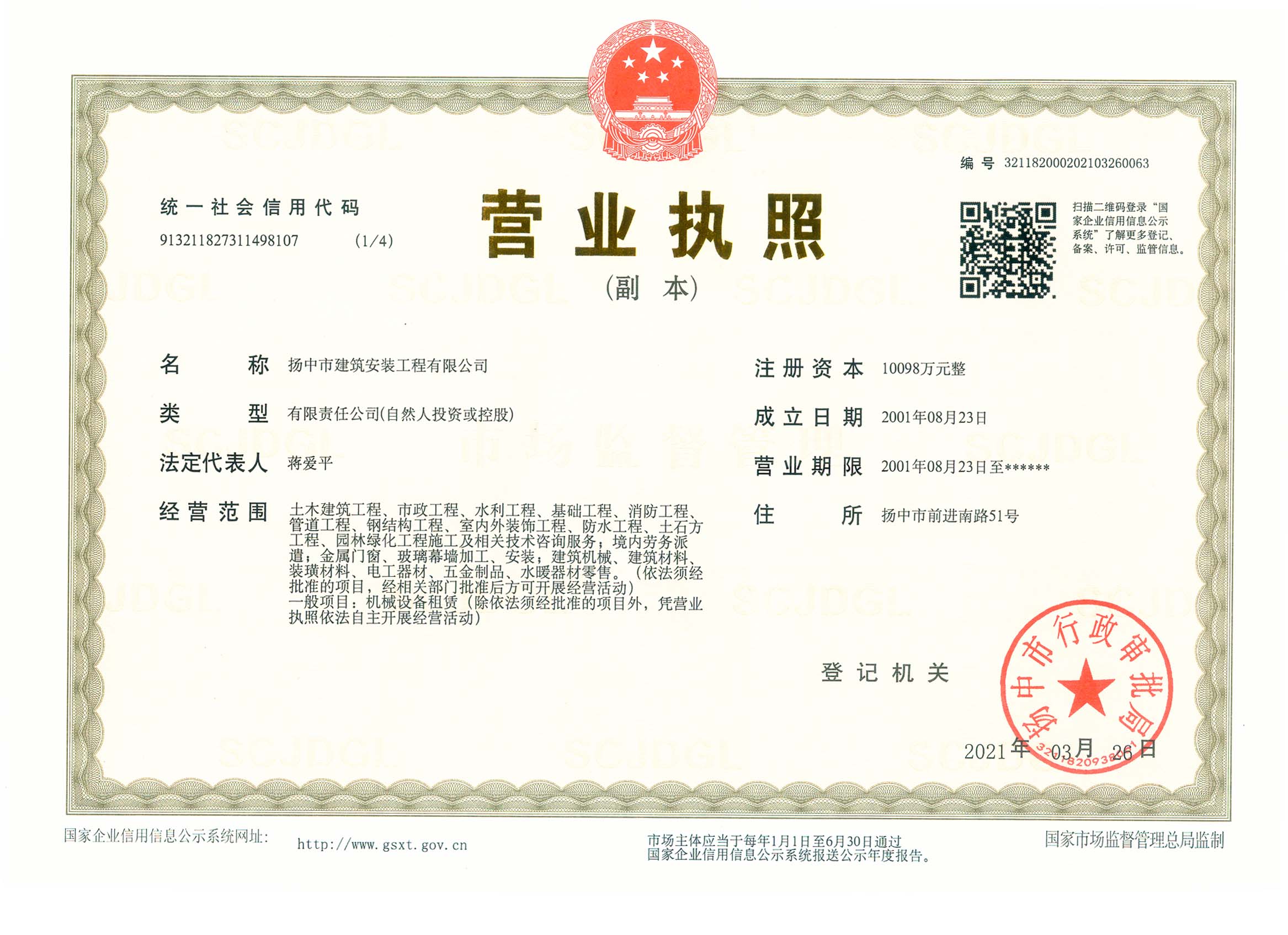 揚(yáng)中市建筑安裝工程有限公司的前身是成立于1955年的揚(yáng)中市建筑安裝工程總公司,從揚(yáng)中第一代建筑人開創(chuàng)了揚(yáng)中建筑業(yè)以來,經(jīng)過60多年的艱苦創(chuàng)業(yè),企業(yè)的綜合實(shí)力不斷發(fā)展、壯大。公司現(xiàn)有職工1688人,有職稱的技術(shù)經(jīng)濟(jì)人員308人,其中具有高級職稱的14人,具有中級職稱的69人,一級項(xiàng)目經(jīng)理15人,二級項(xiàng)目經(jīng)理18人。擁有固定資產(chǎn)7000萬元,注冊資本10098萬元,施工機(jī)械設(shè)備519臺 (套),年施工產(chǎn)值6億元。 揚(yáng)中市建筑安裝工程有限公司是房屋建筑工程施工總承包國家一級和市政公用工程施工總承包國家一級資質(zhì)施工企業(yè),并具有地基基礎(chǔ)工程專業(yè)承包、起重設(shè)備安裝工程專業(yè)承包、建筑裝修裝飾工程專業(yè)承包、消防設(shè)施工程專業(yè)承包、建筑機(jī)電安裝工程專業(yè)承包、鋼結(jié)構(gòu)工程專業(yè)承包等資質(zhì),在上海、南京、鎮(zhèn)江、蘇州、常州、沭陽、蕪湖、湖北襄陽等地設(shè)有分公司。60多年來,公司承建了一大批工業(yè)與民用建筑,為地方經(jīng)濟(jì)和...
